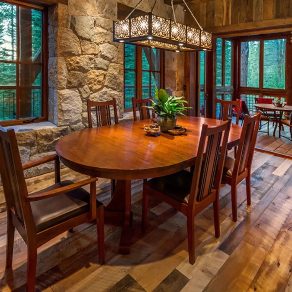 Para destacar ainda mais a beleza da madeira reaproveitada, vale apostar em materiais naturais que harmonizam com o estilo western. Couro, lã, linho e algodão rústico trazem textura e calor, enquanto metais com acabamento envelhecido reforçam o clima de rancho tradicional. Essas combinações deixam o ambiente equilibrado e visualmente interessante.