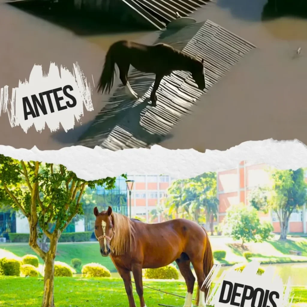 Além disso, a presença do cavalo na instituição contribui para atividades acadêmicas e de sensibilização, aproximando estudantes e visitantes da realidade dos cuidados com equinos.