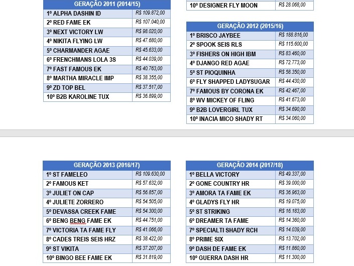 Desde então, o número de Slot Races e provas específicas para potros só aumentou, com premiações cada vez maiores! Veja a seguir os potros mais ganhadores dos últimos anos, segundo o ranking de prêmios do SGP Sistema.