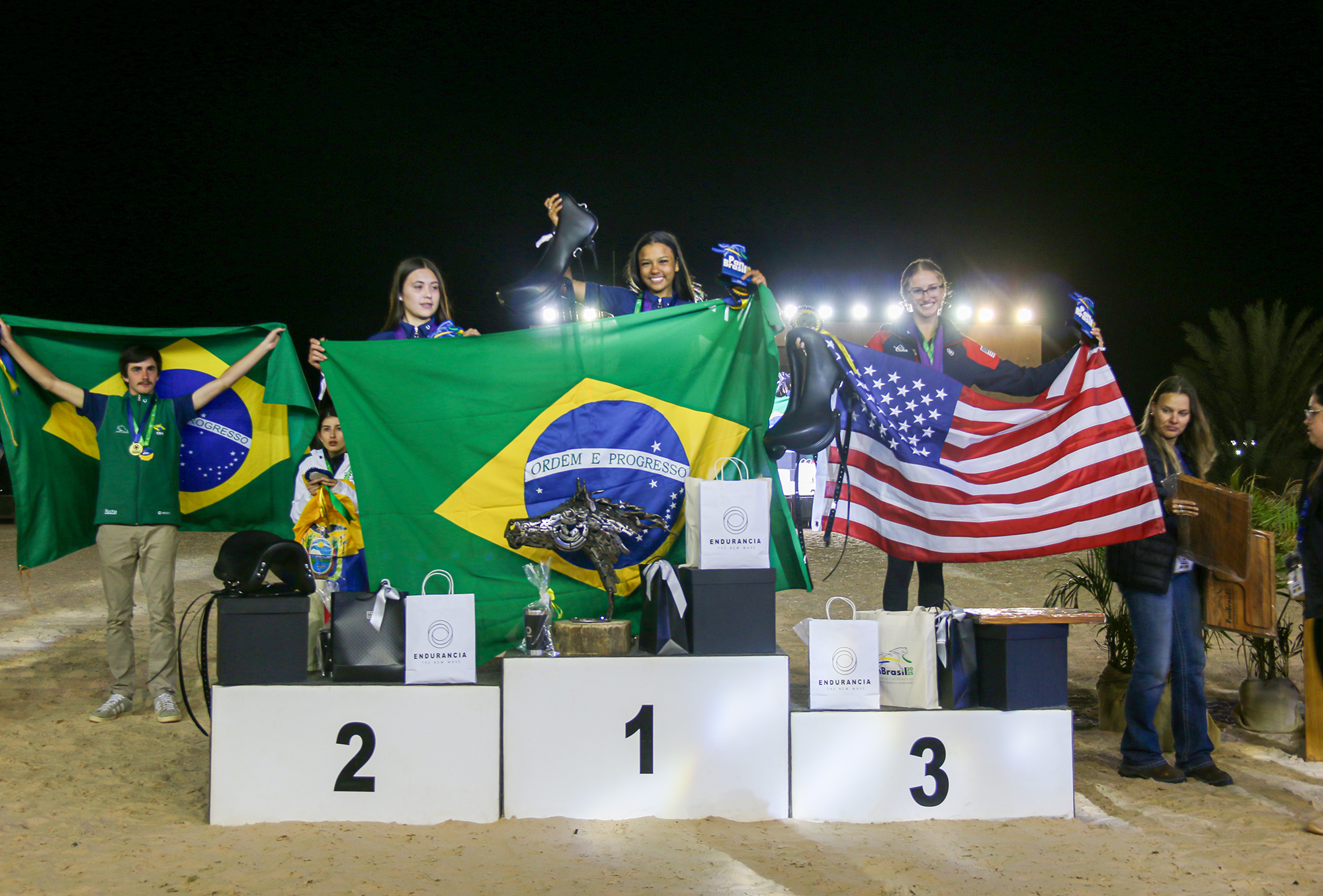 Na grande festa de premiação do Enduro, além dos medalhistas e demais classificados, os cavalos vencedores na série Adultos e Young Riders ganharam o prêmio de melhor condicionamento físico “Best Condition” e, finalmente, o time do Uruguai na categoria Adulto formado por Nicolas Peyronel com Ar Confianzudo Judd Isha montando Ashva Tigresa e Santiago Cabrera com Sturnus Roseus subiu ao topo do pódio.