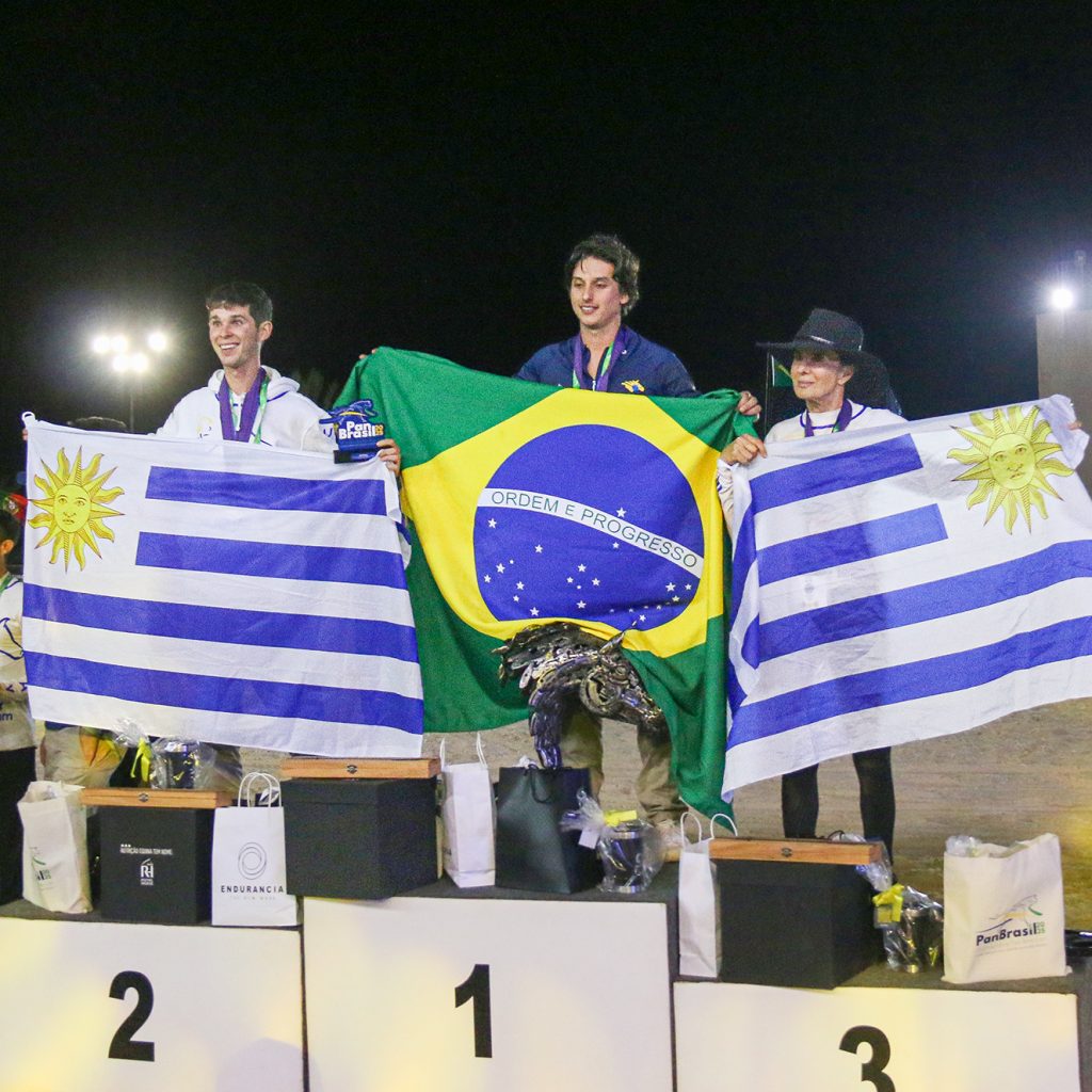 Após um hiato de 18 anos, o Pan-americano de Enduro Equestre 2025 voltou a ser realizado no Brasil, desta vez, no Haras Albar, centro modelo da modalidade, na região de Campinas (SP), em 18/7. O Pan de Enduro, que acontece a cada dois anos, foi disputado nas categorias Adulto e Young Riders, ambas em uma trilha de 120,5 km em quatro aneis, com dois ouros individuais para o Brasil: José Caio Vaz Frisoni Guimarães, 24, com Stud Brasil Itajara, campeão Adultos, e Lavinya Laçalvia Ferreira com Baruc do Triunfo, campeã Young Riders. Na disputa por equipes do Enduro, categoria Adulto, o Uruguai foi campeão.