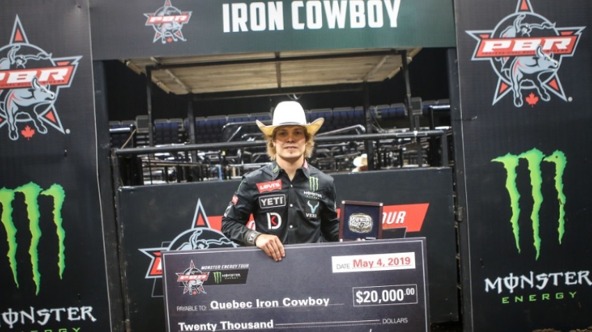 Das quatro rodadas do Monster Energy Tour International Major em Québec City, o Iron Cowboy da PRB Canadá, Derek Kolbaba (foto de chamada), de Walla Walla, Washington, saiu vitorioso em três. Ele venceu esse evento pela segunda vez em sua carreira e somou pontos para o ranking mundial da Professional Bull Riders.