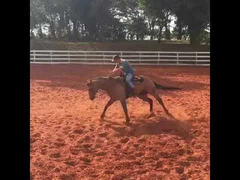 Note que nos hollbacks, meu cavalo sai sempre impulsionando forte com o pé de dentro e bem alinhado para frente. Essa resposta rápida da rédea, e em seguida a impulsão forte para frente, serão os mesmos movimentos que vou querer realizar em alta velocidade na hora da prova.